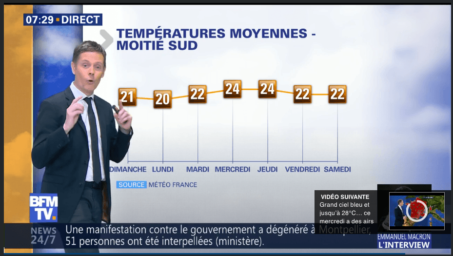 Présentation du bulletin météo de BFMTV en novembre 2009 et mai 2010