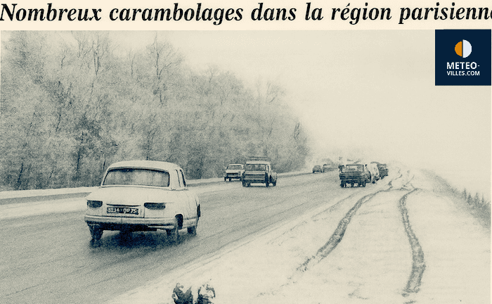 La deuxième offensive de la neige engendre de nombreux carambolages en Région parisienne dans la matinée du 8 décembre 1969 - source meteo-paris.com