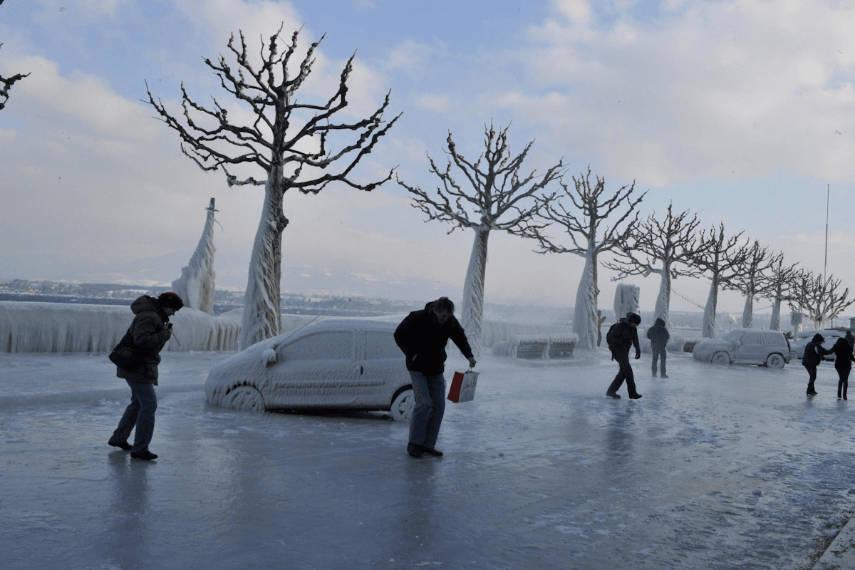 En réalité, cela fait plus de 7 ans que la France n'a plus vécu de "vague de froid" au sens strict du terme. Le dernier épisode date de fin février 2018. Du 26 au 28 février 2018, l'indicateur thermique était resté dans le négatif avec un pic à -3,2°C le 27. Les deux tiers nord et est de la France avaient connu 2 à 3 journées sans dégel, y compris Paris. La nuit la plus froide fut celle du 27 au 28 février avec des minimales descendant fréquemment sous les -10°C dans le centre et l'est de l'hexagone (-14°C à Luxeuil, Saint-Étienne et Aurillac). La bise était venue accentuer la sensation de froid avec des ressentis parfois proches de -10 en plein jour ! Certains secteurs bordant le Lac Léman ont été recouverts de glace sous les embruns poussés par la bise, comme l'illustre la photo ci-dessous.