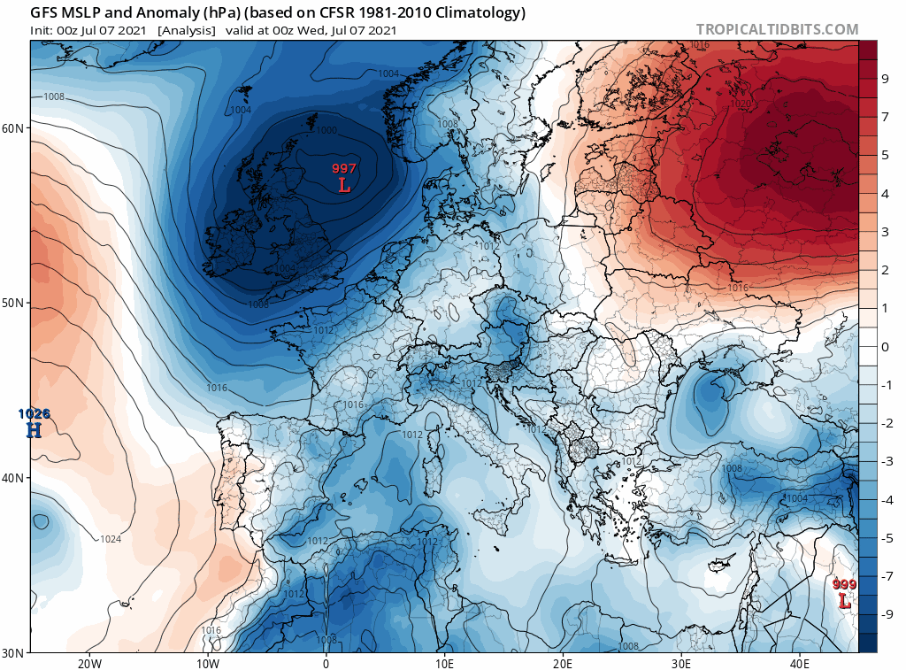 Situation à échelle continentale au mercredi 7 juillet 2021 - Météo Villes