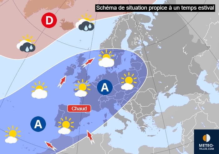 Schéma de la situation favorable à un temps estival sur la France - Météo Villes