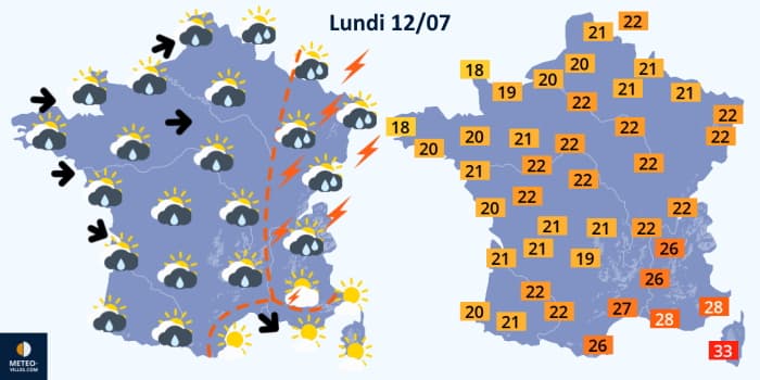 Prévisions pour le lundi 12 juillet 2021 - Météo Villes