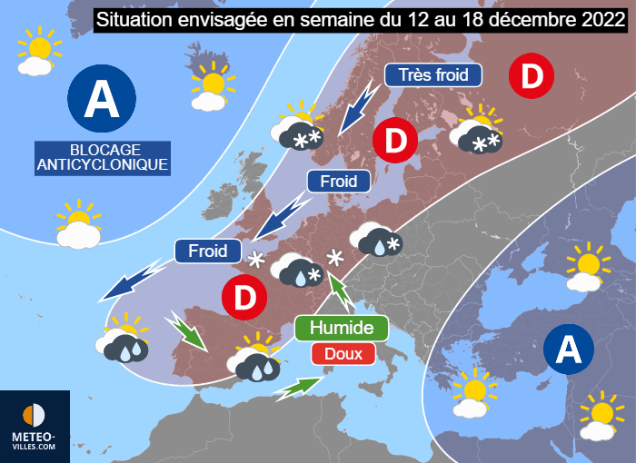 Situation envisagée en semaine du lundi 12 au dimanche 18 décembre 2022 - Météo Villes