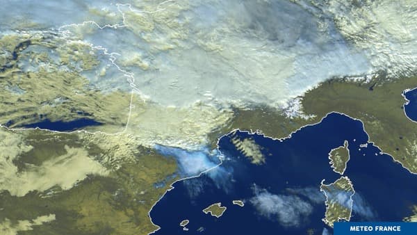 Image satellite montrant le foehn protégeant la méditerranée en flux de Nord-Ouest perturbé - Via météo-France