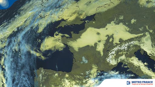 Image satellite d'une situation anticyclonique et de nuages bas persistants sur le Nord et le Nord-Est du pays - Météo-France