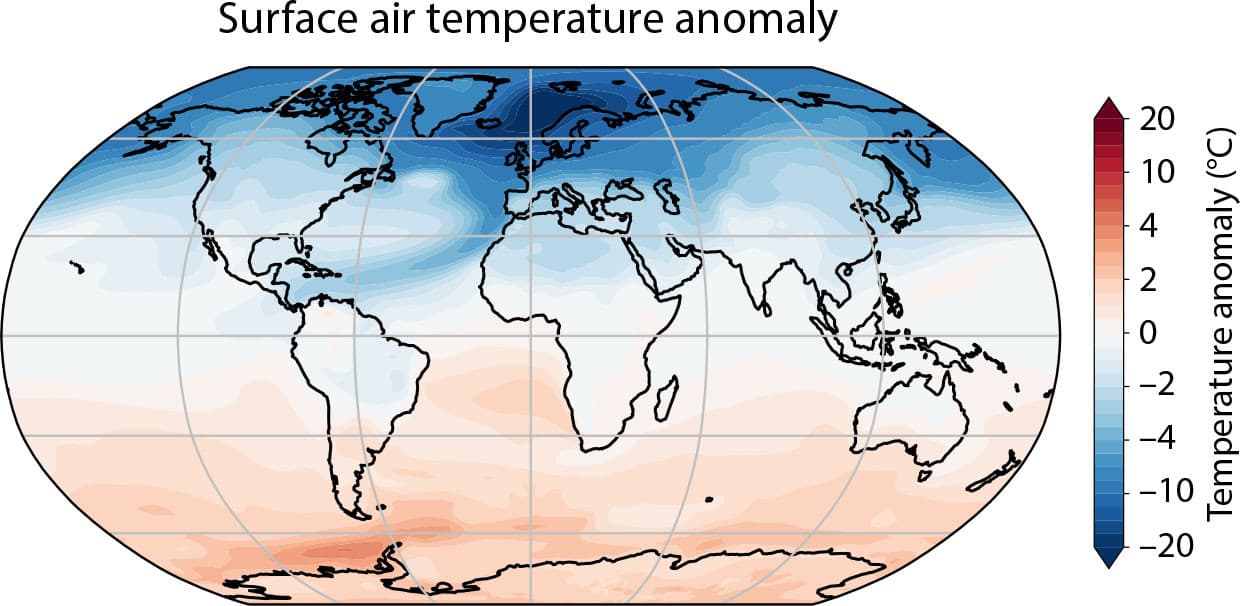 Le scénario présenté ci-dessus reste raisonnable, mais d'autres le sont moins. Dans certaines modélisations, c'est un refroidissement considérable qui se produirait sur l'hémisphère nord et tout particulièrement sur le nord de l'Atlantique et l'Europe. Des scénarios envisagent une baisse de 10°C sur le nord-ouest du continent. La France se refroidirait sensiblement, notamment sa partie nord.