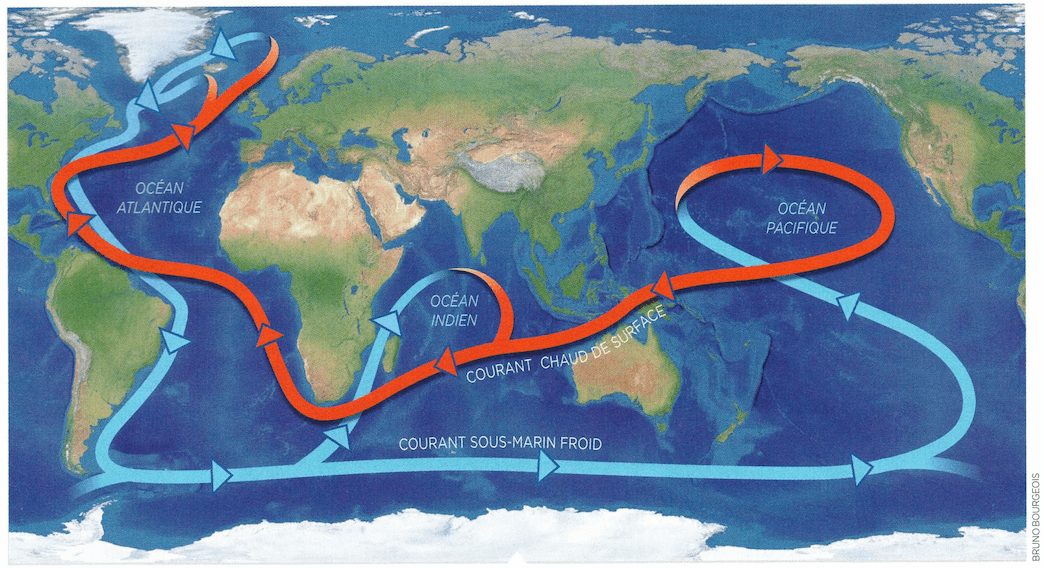 Schéma simplifié de la circulation thermohaline sur Terre - via Science & Avenir