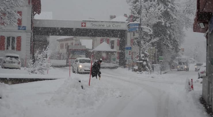 La Cure (frontière franco-suisse) sous une neige forte ce 4 décembre 2020 - via Le Progrès