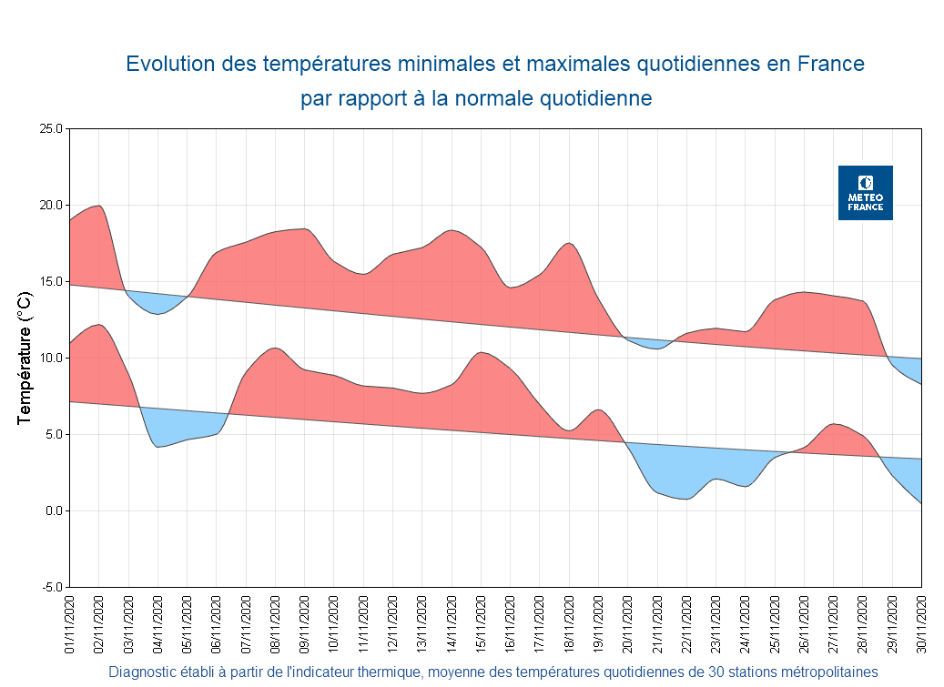 Au total, ce mois de novembre a été marqué par 22 jours avec températures supérieures aux moyennes, contre 8 journées « fraîches ».
