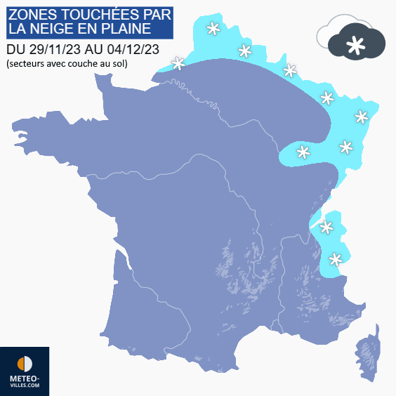 Zones de plaine touchées par la neige entre le 29 novembre et le 4 décembre 2023 - Météo Villes