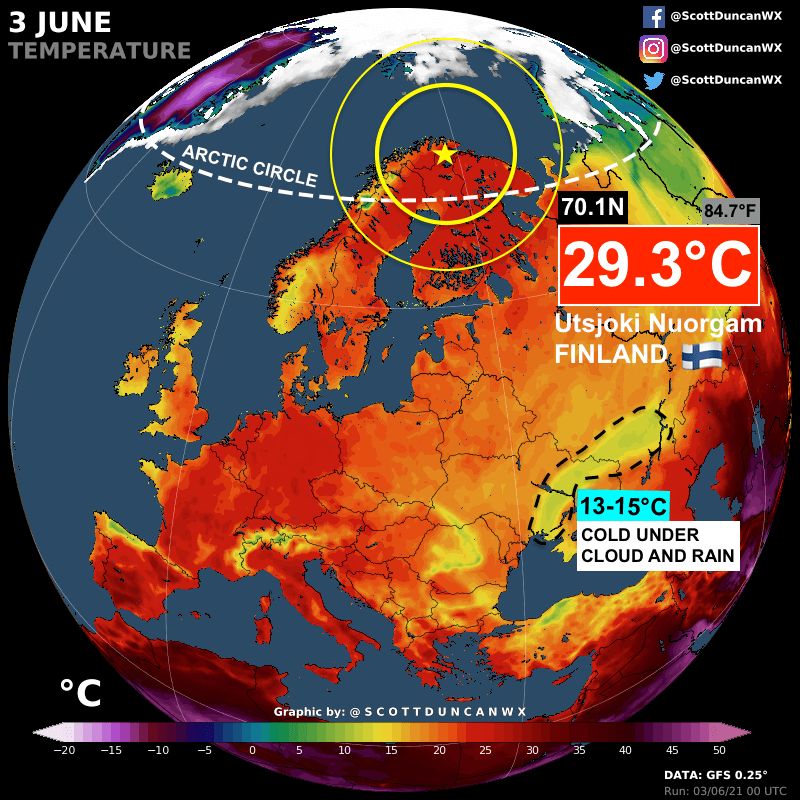 Température exceptionnelle au Nord du cercle Arctique le 3 juin dernier – Via Scott Duncan