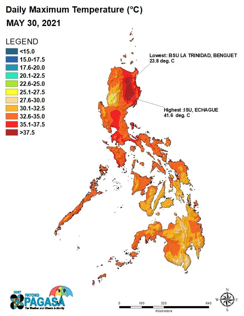 Températures maximales relevées le 30 mai 2021 aux Philippines – PAYONG PAGASA