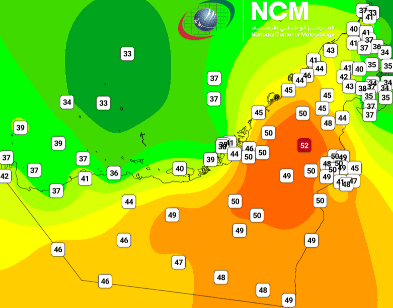 Températures maximales relevées le 6 juin 2021 aux Emirats-Arabes-Unis – National Center of Meteorology