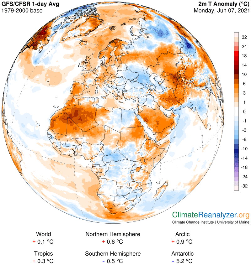 Anomalies de températures en Afrique ce lundi 7 juin 2021 – Climatereanalyzer