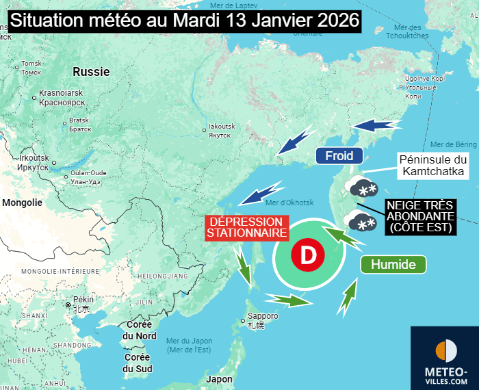 Carte expliquant la tempête de neige qui a frappé le Kamtchatka (Russie) la semaine dernière - Météo Villes