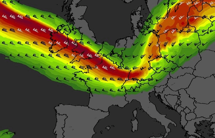 C'est un fait assez peu commun au mois de juin : le courant jet (ou jet stream) est actuellement très dynamique sur le proche-Atlantique et l'Europe. Ce couloir de vent circulant à haute altitude (vers 9000 mètres) et qui dirige les perturbations circule au dessus du nord-ouest de la France ce jeudi 5 juin 2025, plongeant vers l'Europe Centrale avant de remonter vers le nord-ouest de la Russie. S'il n'est pas rare que le jet passe par nos régions à cette saison, ses vitesses sont anormales pour un début d'été, atteignant jusqu'à 220 km/h sur le nord de la France et même 290 km/h au large de l'Irlande !