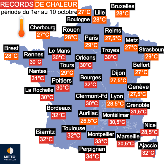 Records de températures maximales pour les 10 premiers jours d'un mois d'octobre - Meteo-villes