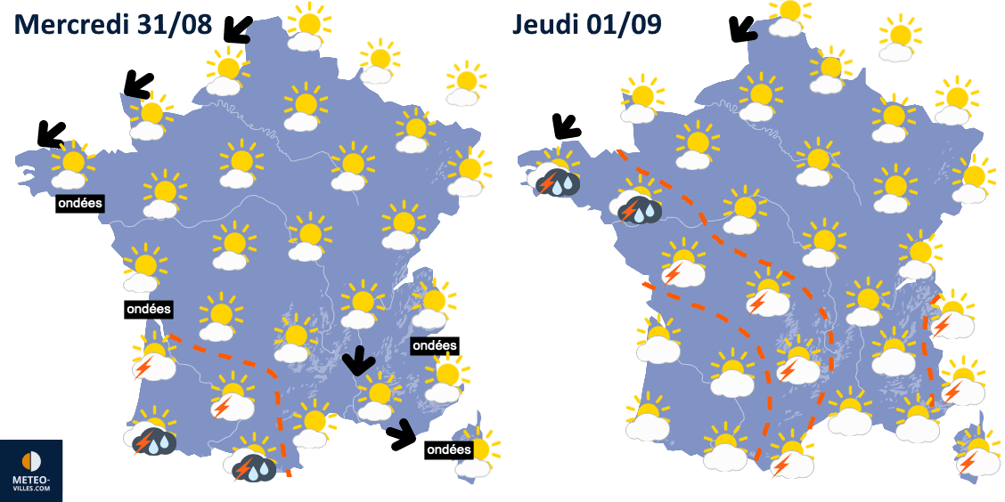 Prévisions pour les mercredi 31 août et jeudi 1er septembre 2022 - Météo Villes