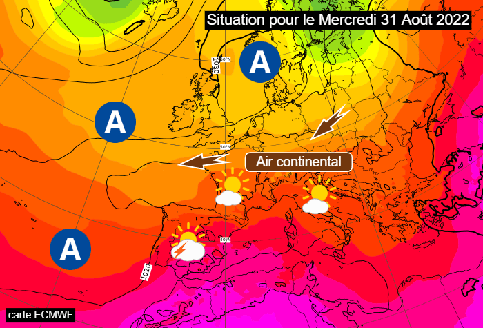 Situation à échelle continentale pour le mercredi 31 août 2022 - via ECMWF
