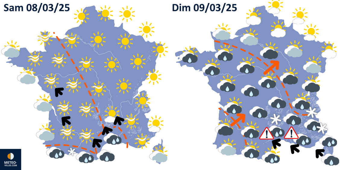 Prévisions météo pour le week-end des samedi 8 et dimanche 9 mars 2025 - Météo Villes