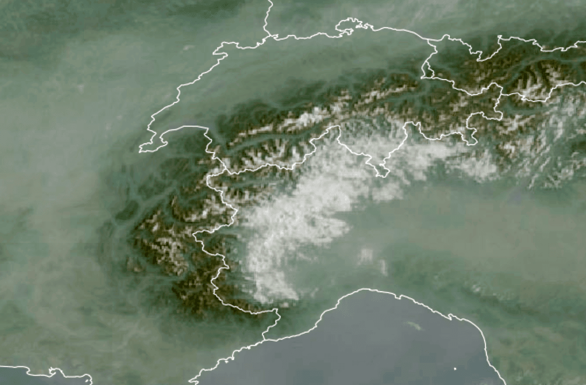 Fumées épargnant les sommets des Alpes ce matin du mardi 10 juin 2025 - EUMETSAT