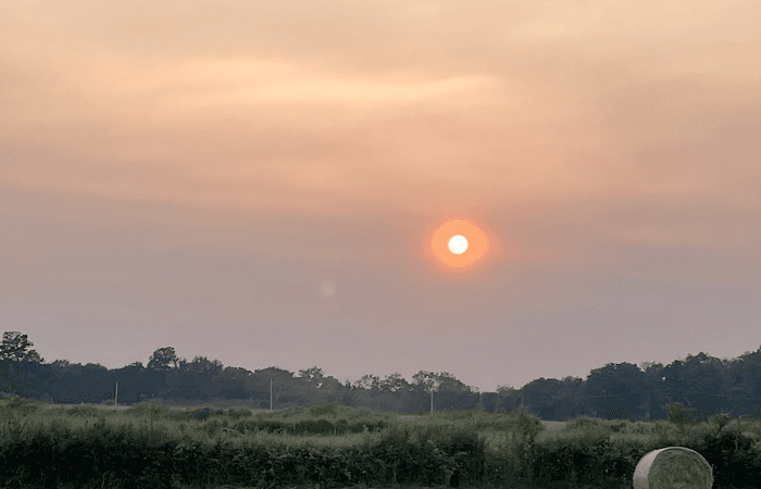 Ciel teinté par les fumées des incendies du Canada à Viriat (01) le soir du lundi 9 juin 2025 - via infoclimat.fr