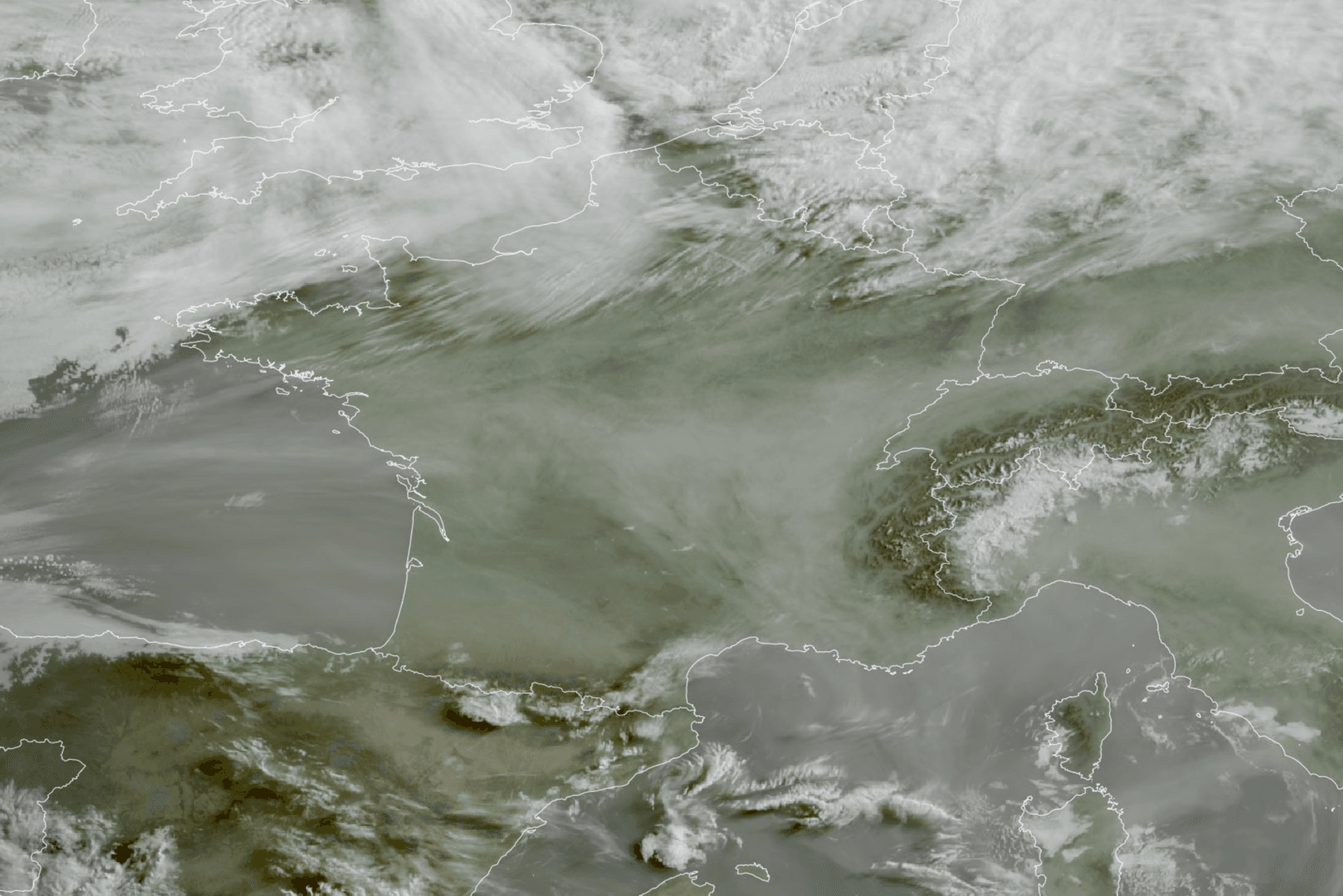 Cela fait plusieurs jours que le bleu du ciel n'est plus si bleu... Comme nous l'expliquions dans notre article du week-end >>>, d'importantes quantités de fumées en provenance des incendies nord-américains ont traversé l'Atlantique et survolent une partie de l'Europe, dont la France. Le flux mou des derniers jours favorise leur stagnation. L'image satellite de ce matin du 10 juin 2025 est éloquente avec des concentrations de fumée importantes.