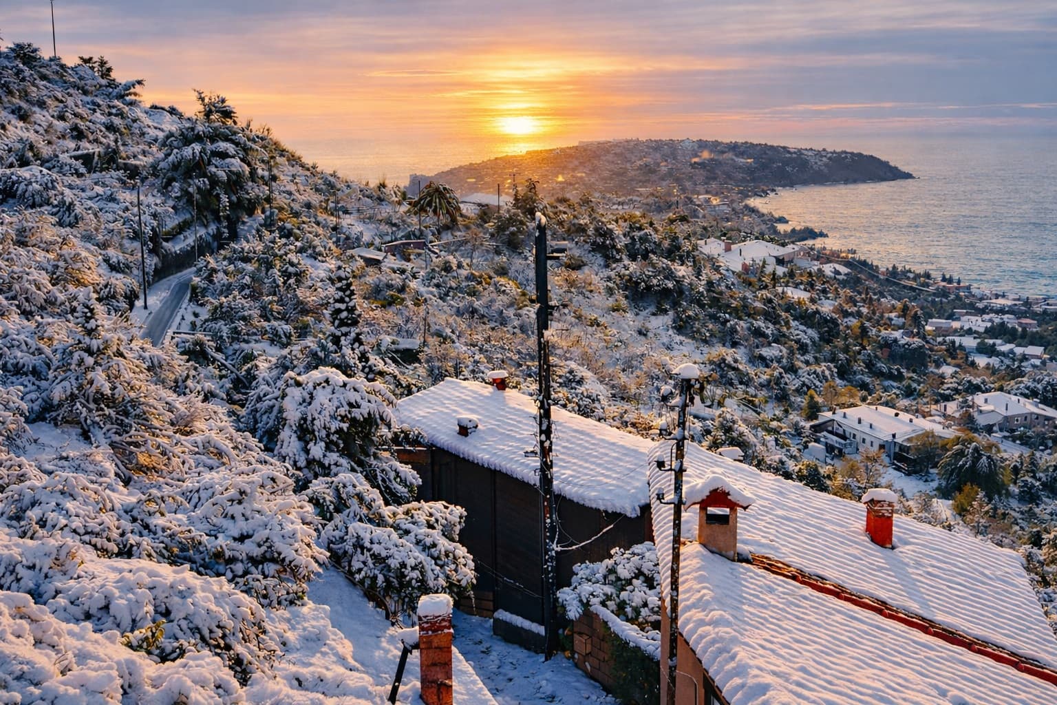 La neige a été observée de façon abondante jusqu'au littoral méditerranéen, ici à Roquebrune-Cap-Martin dans les Alpes-Maritimes à la mi-janvier 1963