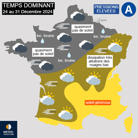 Météo dominante entre le mardi 24 et le mardi 31 décembre 2024 - Météo Villes
