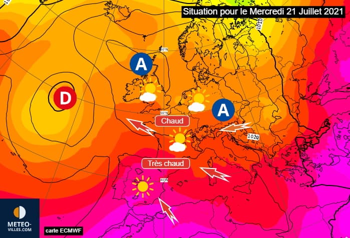 Situation à échelle continentale pour le mercredi 21 juillet 2021 - via ECMWF