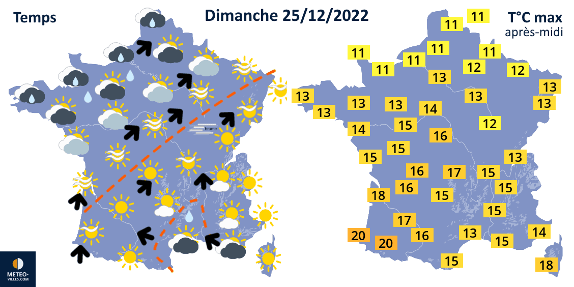 Prévisions du temps et des températures pour ce dimanche 25 décembre 2022 - Météo Villes