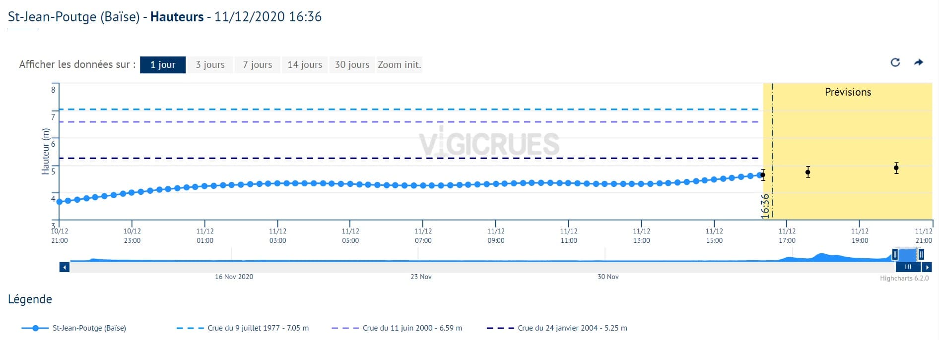 Crue de la Baïse à Saint-Jean-Poutge (32) ce vendredi 11 décembre - Via Vigicrue