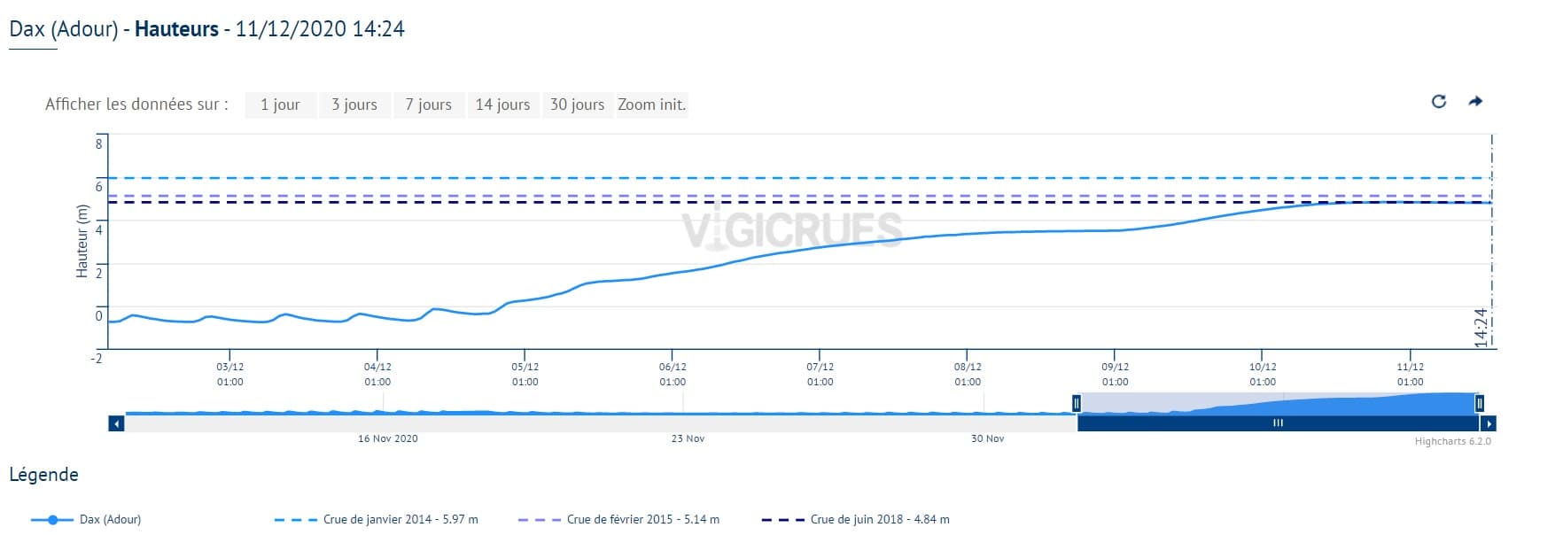 Crue de l'Adour à Dax ce vendredi 11 décembre - Vigicrue
