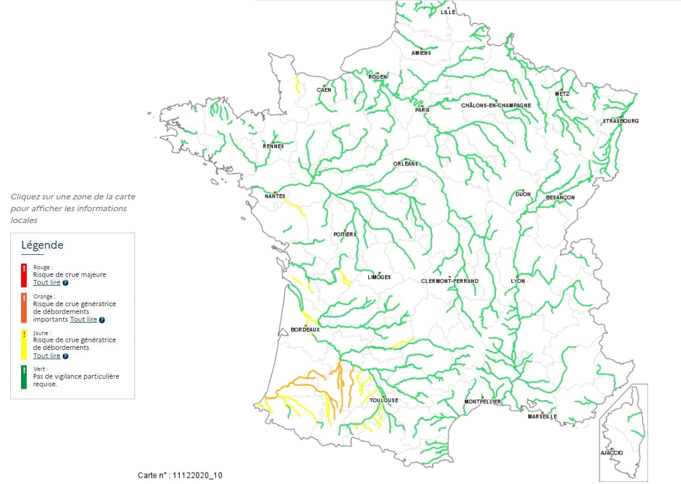 Carte de vigilance Vigicrue du 11 décembre