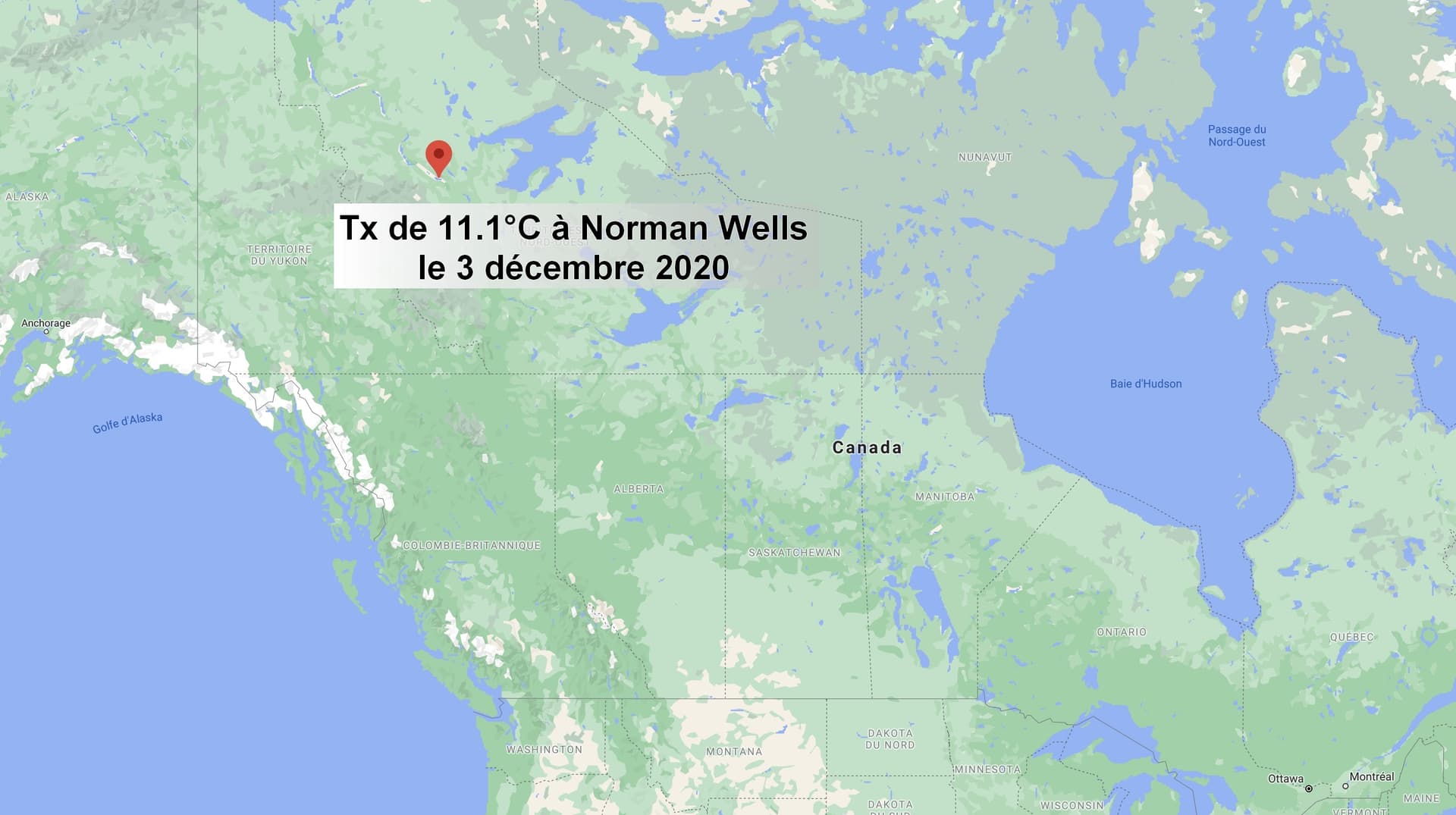 Localisation du record de température maximale pour un mois de décembre sur le Nord-Ouest du Canada