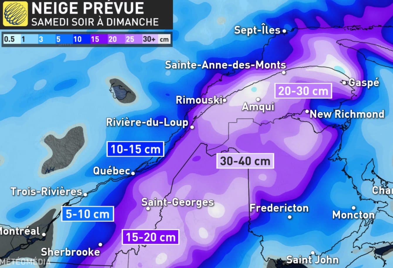 Cumuls de neige attendus ce week-end sur l'Est du Canada - Via Météo Média