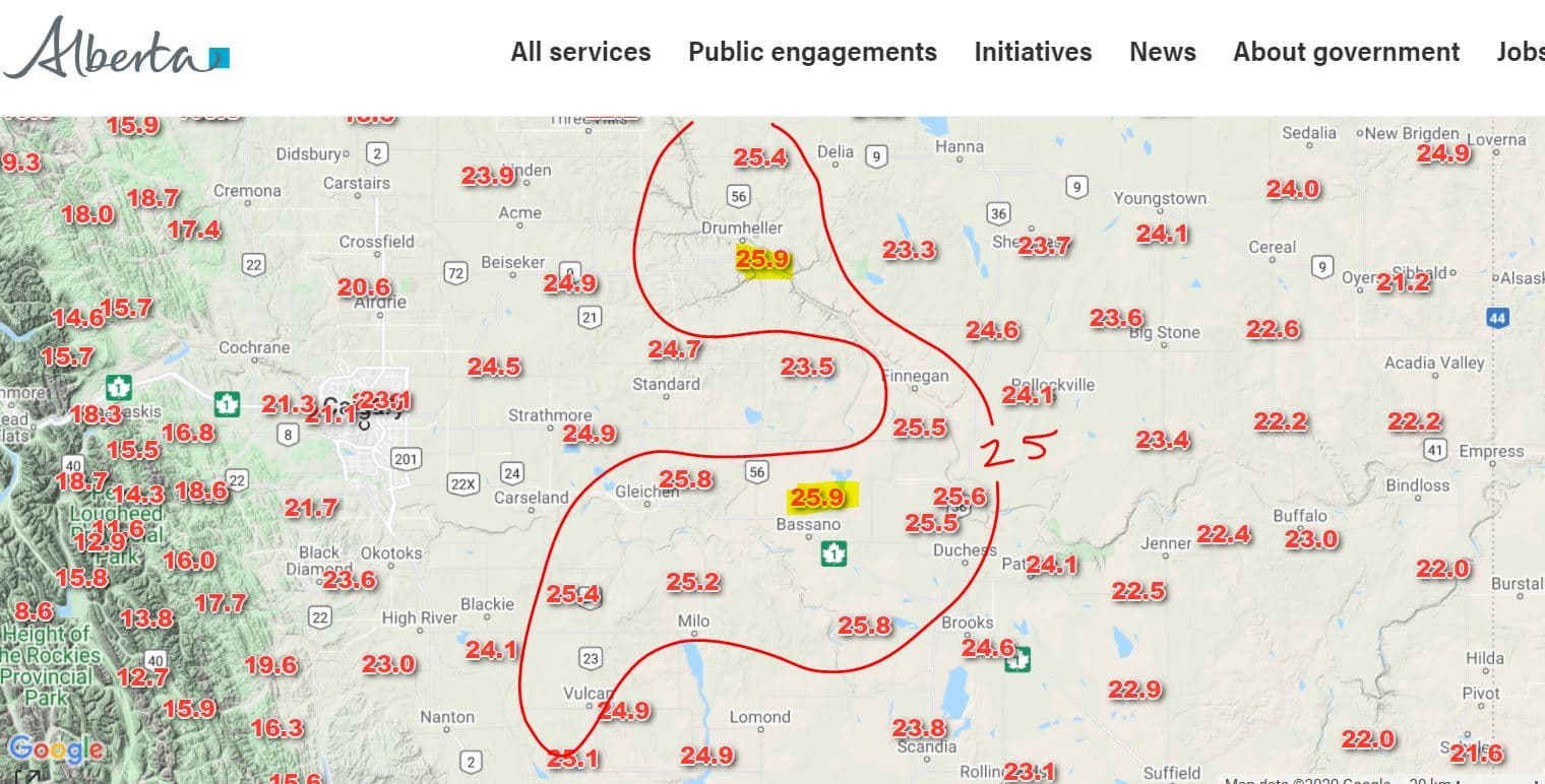 Carte des températures maximales en Alberta le 3 Novembre dernier - via twitter : @thierrygooseBC