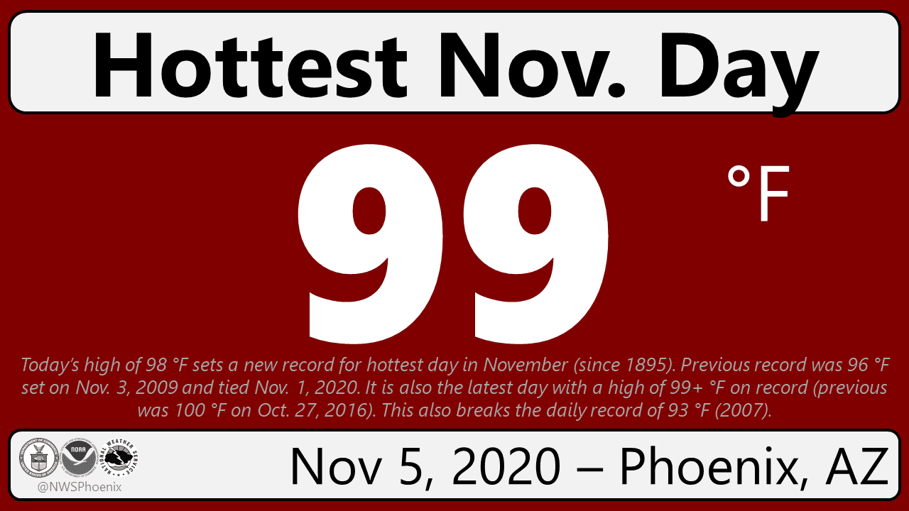 Record de température maximal à Phoenix ce 5 Novembre - via NWS Phoenix