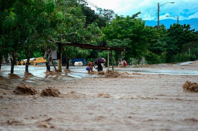 Une autoroute sous l'eau à San Pedro Sula au Honduras - ORLANDO SIERRA / AFP