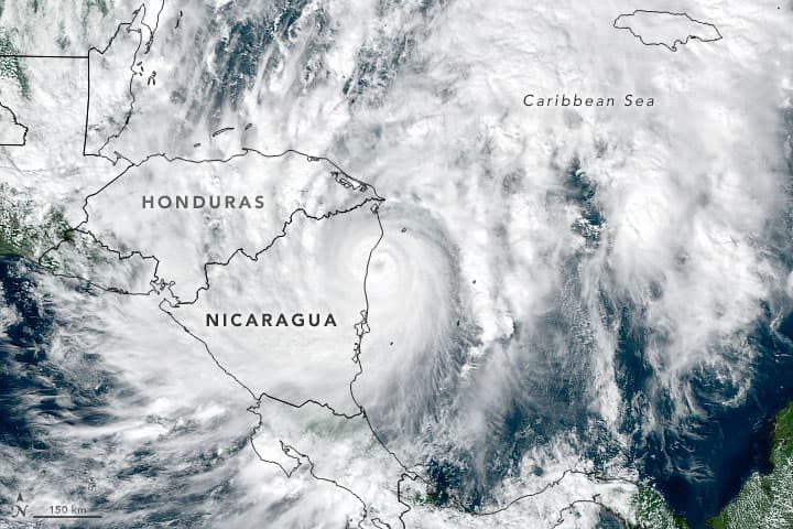 Image satellite de l'ouragan Eta à son entrée dans les terres au Nicaragua - via NASA