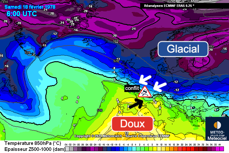 La mi-février 1978 marque une période météorologique hors du commun. Pendant plus d’une semaine, un affrontement persistant s’installe entre de l’air froid venu d’Europe du Nord et de l’air beaucoup plus doux en provenance du sud. De la Normandie au Nord-Est, cette zone de conflit devient le théâtre de plusieurs épisodes spectaculaires de neige et de pluies verglaçantes.