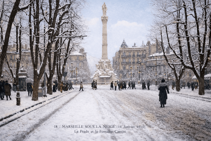 14 janvier 1914 : les rues de Marseille sont recouvertes d'un épais manteau blanc... carte postale exclusive meteo-paris.com