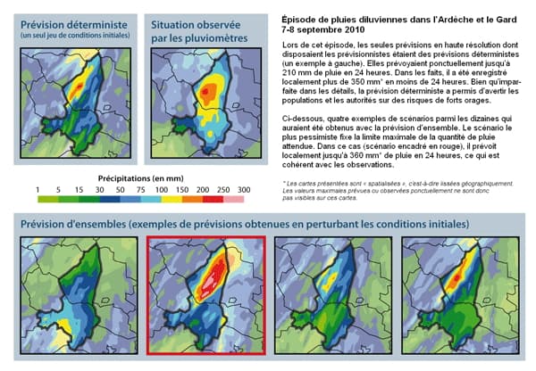 Panel de scénarios de prévision lors d'un épisode de fortes pluies en Ardèche - Météo France