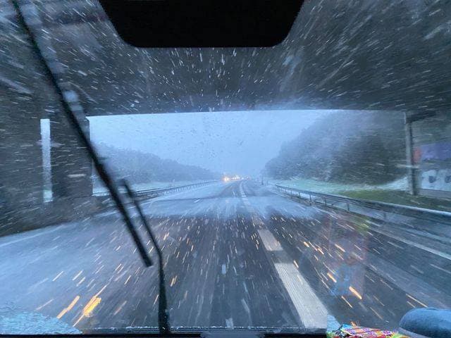 Chutes de neige sur l’A84 près de Margueray(50) en milieu de matinée – Photographie Emilie Anfray via Météo Basse-Normandie