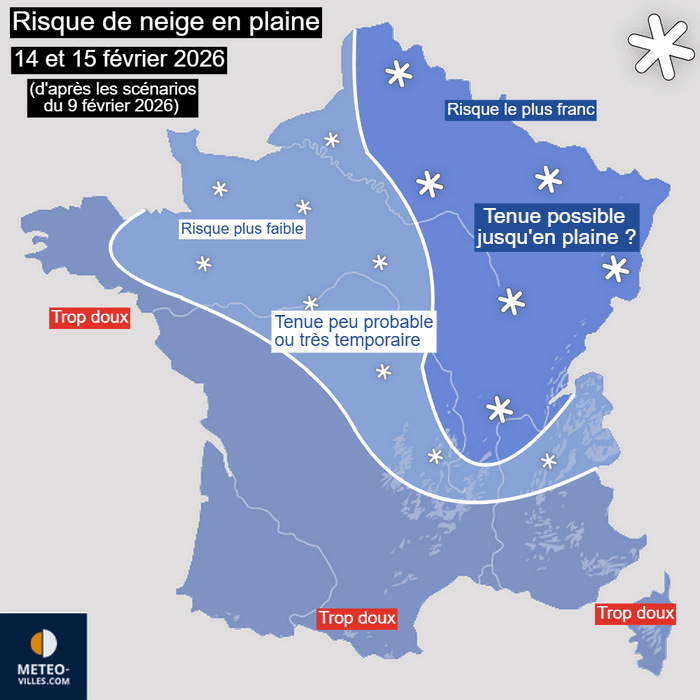 Risque de neige jusqu'en plaine en France pour le samedi 14 février 2026 – Modèle ECMWF via meteociel