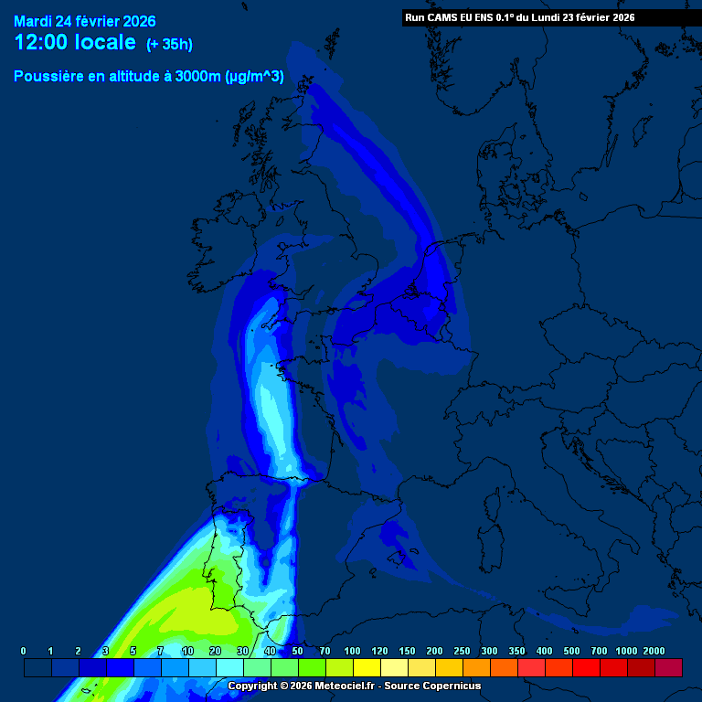 Simulation des remontées de poussière saharienne à 3000 m d'altitude d'ici mercredi soir - Meteociel