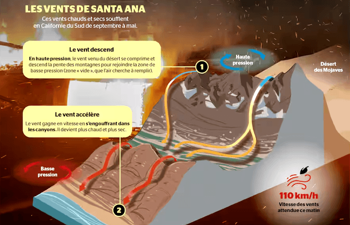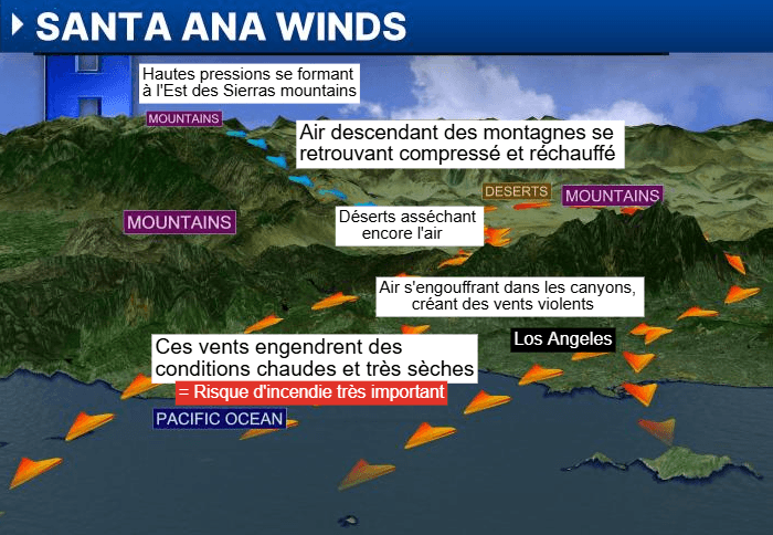 Schéma du vent de Santa Ana atteignant Los Angeles - Météo Villes