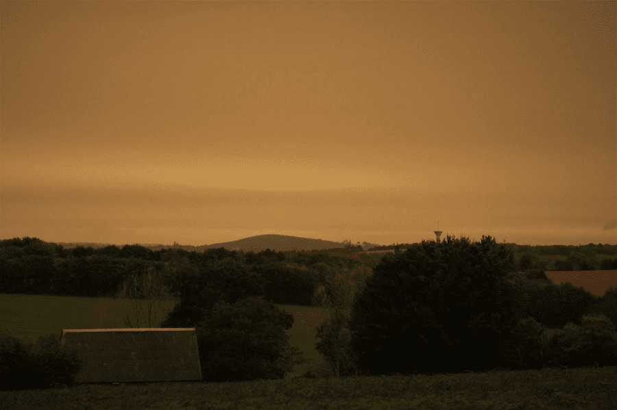 Ciel recouvert par les fumées des incendies portugais en Normandie le 16 octobre 2017 - photo Gilles Davy