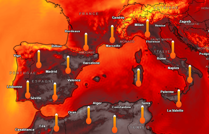 Ce dôme de chaleur a résulté de températures remarquablement chaudes et parfois records ce mardi 18 juillet 2023. En France, le thermomètre a atteint 40,6°C à Verdun (Ariège) et Tiranges (Haute-Loire) ou encore 40,7°C au Luc (Var). En Italie, Rome a pulvérisé son record absolu de chaleur avec 42,9°C ce mardi ! En Sardaigne, on a mesuré 45,8°C et même 46,3°C à Licata en Sicile ! Du côté de l'Espagne, la Catalogne a atteint la barre des 45°C pour la première fois depuis le début des mesures avec 45,3°C à Figueres !