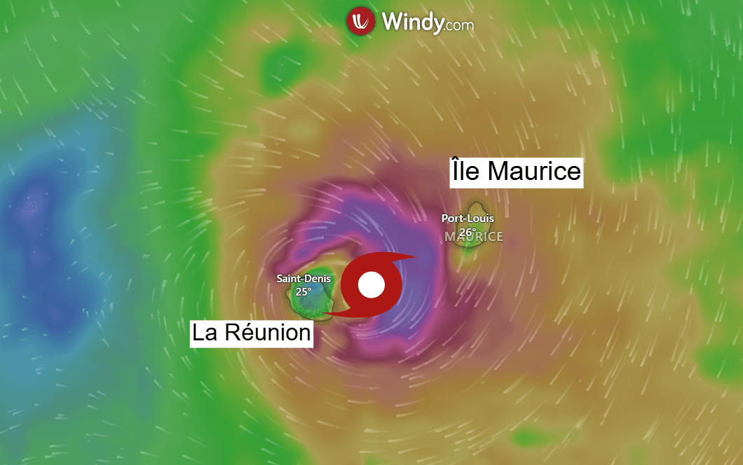 Certains scénarios envisagent le passage d'un cyclone entre l'île Maurice et la Réunion ce 27 février - via Windy